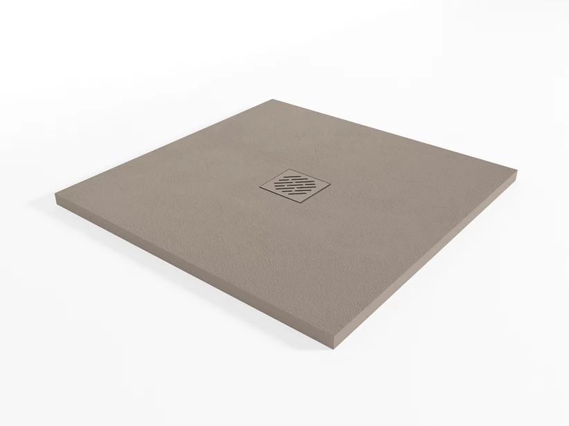 COSMOS piatto doccia cm. 90×90 in resina effetto pietra leggermente bocciardata con griglia copripiletta a righe oblique in tinta