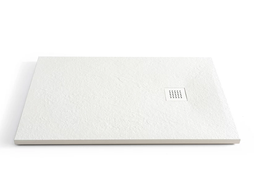 Piatto doccia in ceramica serie PIETRA cm. 100×70 H3 texture effetto pietra a spacco, finitura bianco opaco.