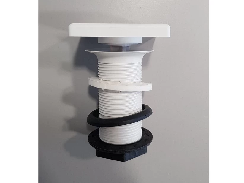 TOPSY kit piletta a scarico libero per lavabi hpl UNITOP con copripiletta ocritech bianco opaco incluso