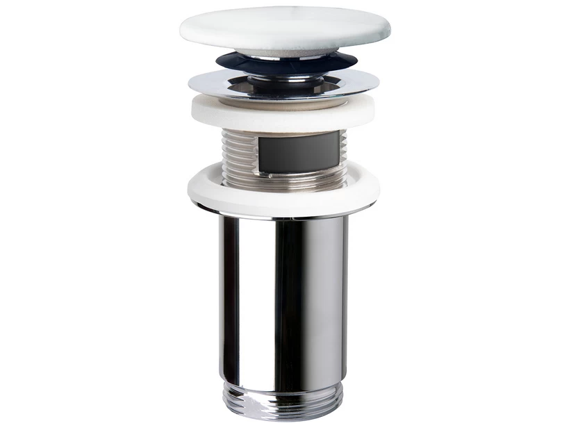 FOREVER piletta lavabo click-clack universale h90mm con/senza troppopieno con tappo tondo in ceramica bianco lucido