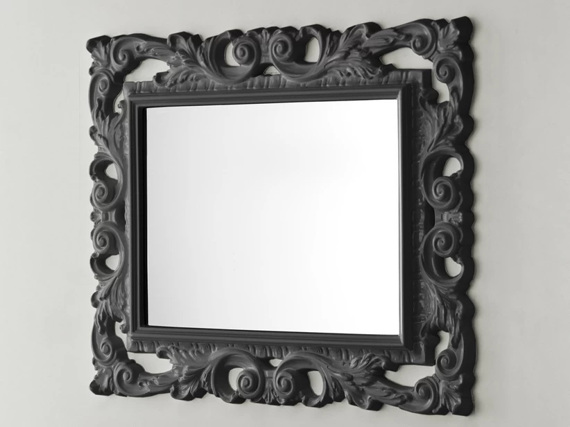 Specchio barocco 94×75 cornice in pasta di legno e resinagrigio antracite
