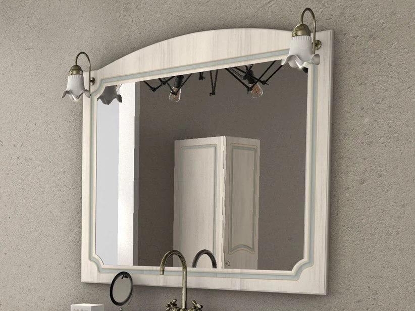 MONET specchio con cornice in legno cm. 110×100 bianco decape’ con due fori frontali laterali per lampade aplique.