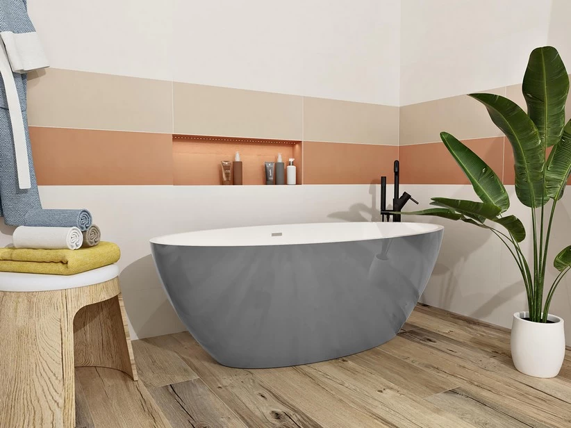 NEMO5 bicolor vasca freestanding in pietraluce interno bianco lucido / esterno grigio lucido